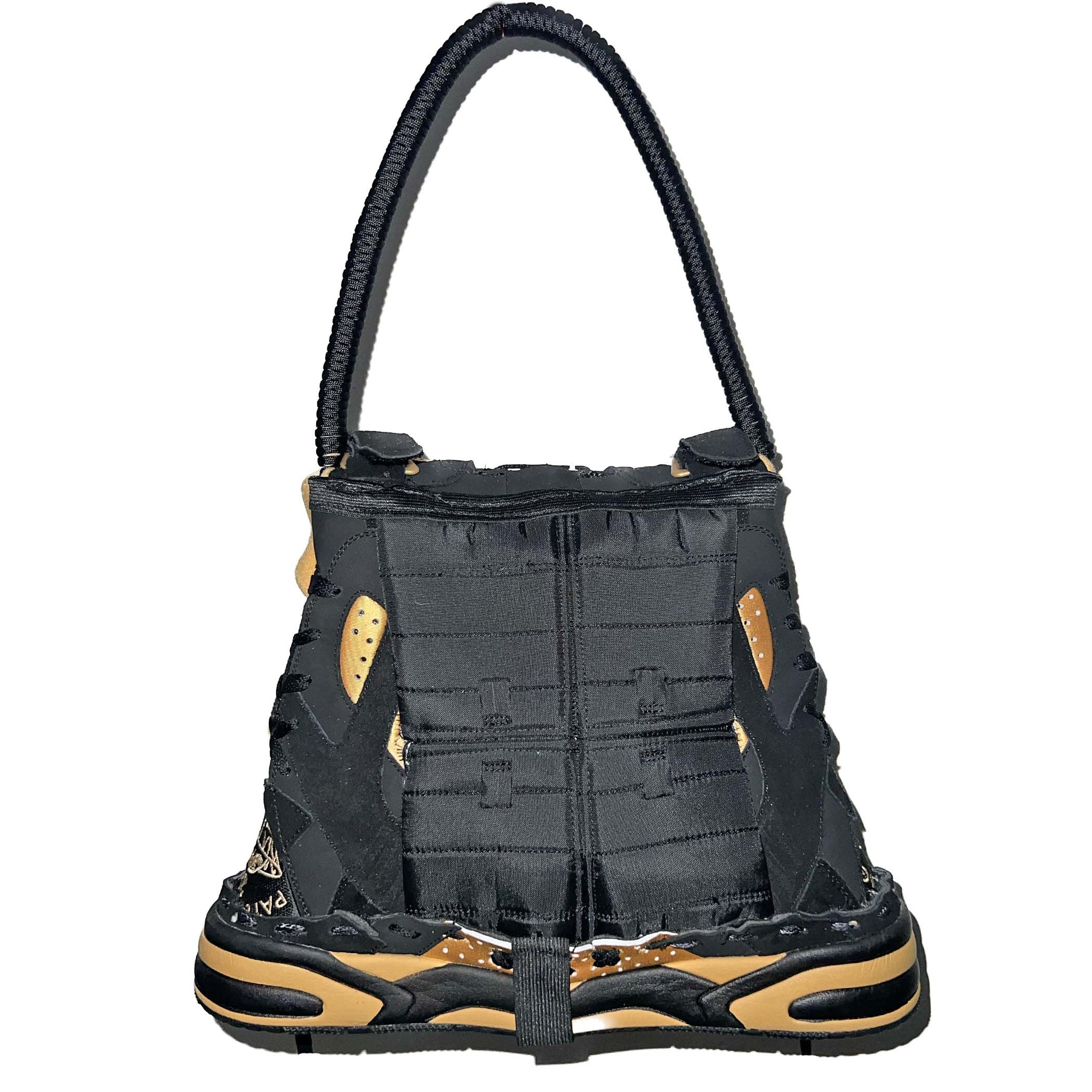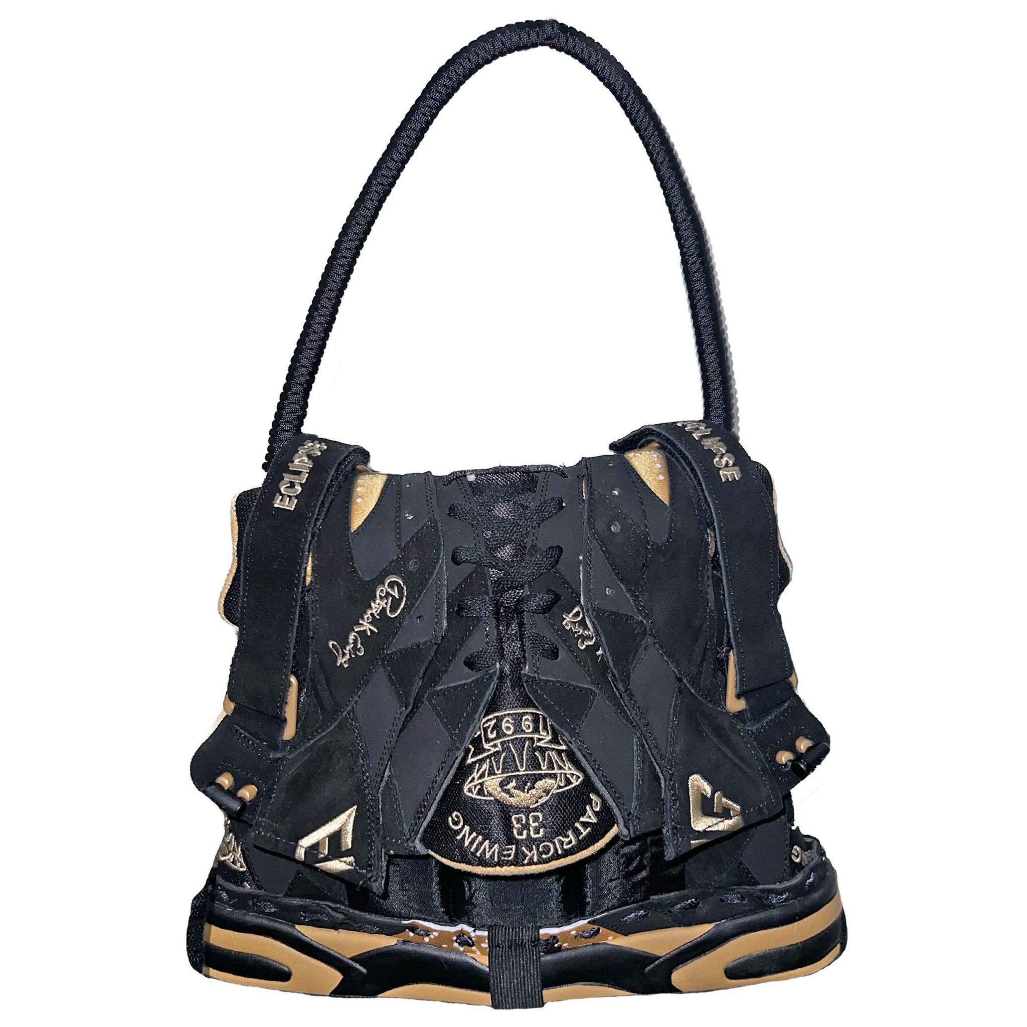 FMG X ECLIPSE SNEAKER BAG, handmade using sustainably sourced materials. Bag is 13X9 with a 20 inch handle.