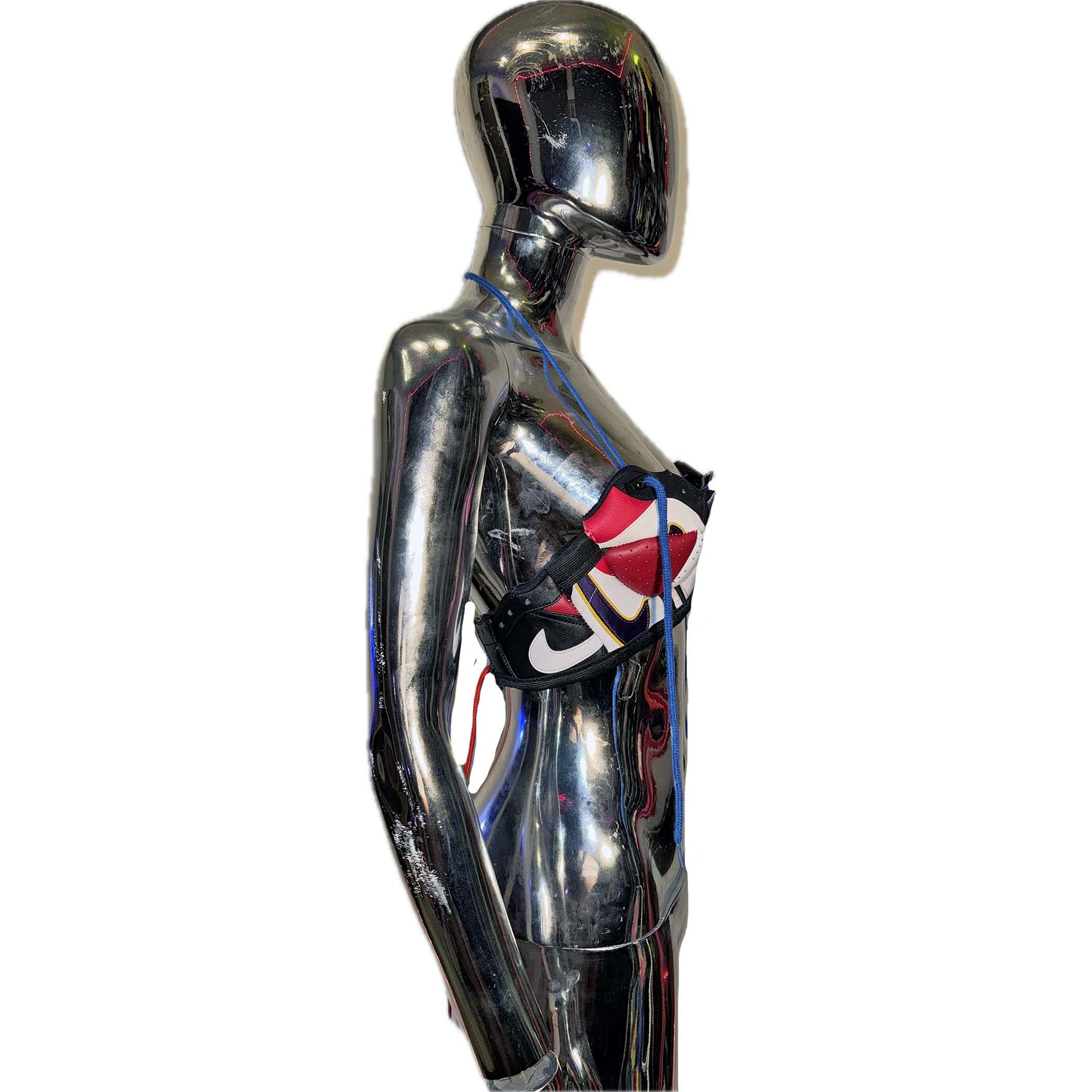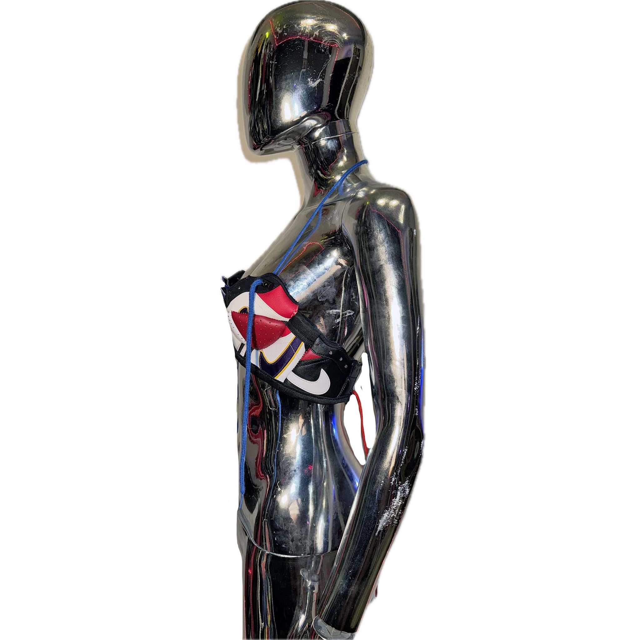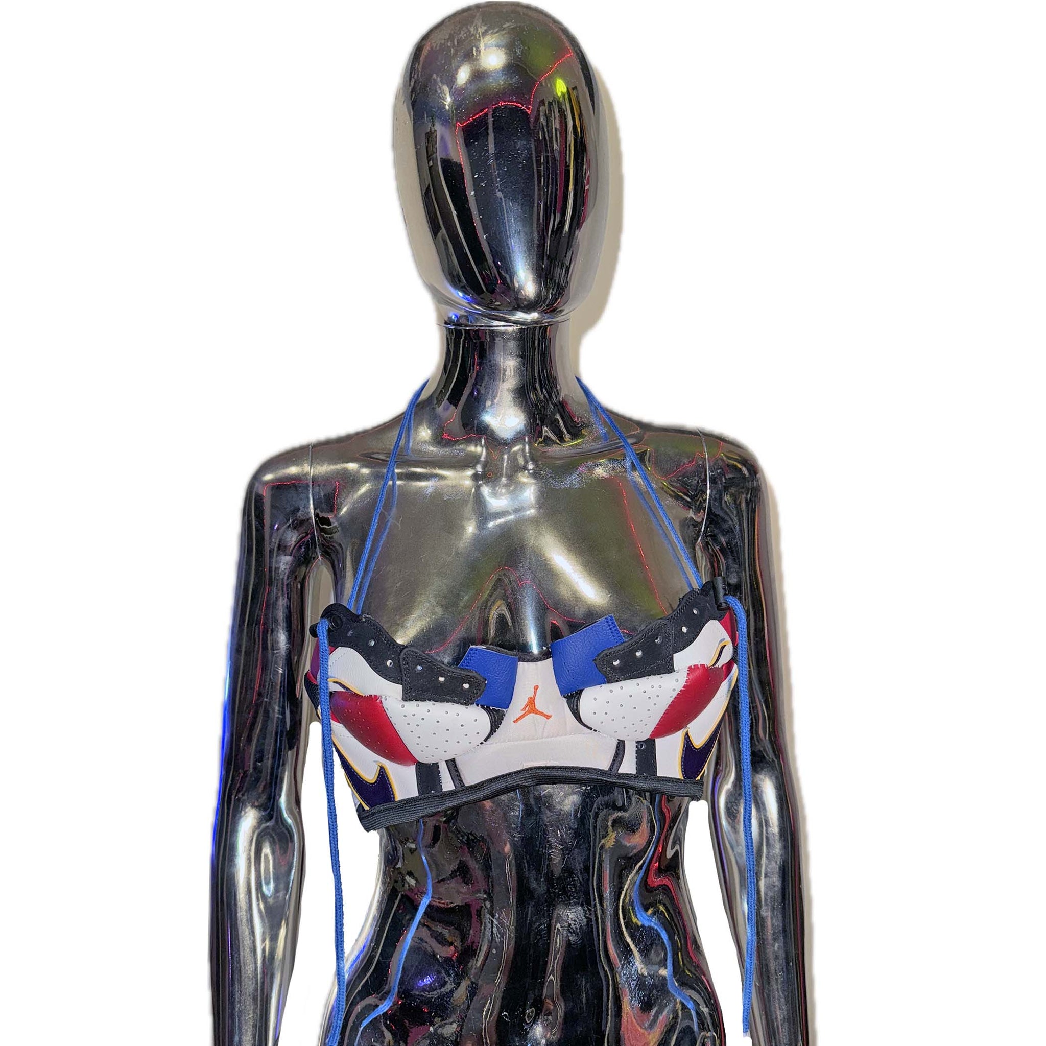 Upgrade your sneaker game with the FMG X COURT SIDE SNEAKER BRA! Handmade and upcycled, this bra is the perfect fit for bra size A. Get ready to turn heads and feel confident in this 🔥 piece.