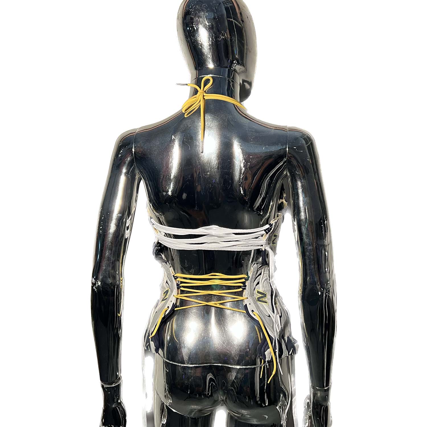 Experience luxury and sustainability with theBAPE corset top. Handcrafted using upcycled BAPE duffel bags , each top is a unique blend of style and eco-friendliness. Elevate your wardrobe with this one-of-a-kind, high-end piece. Fits bra size A-B and waist sizes 22-32 straps are removable