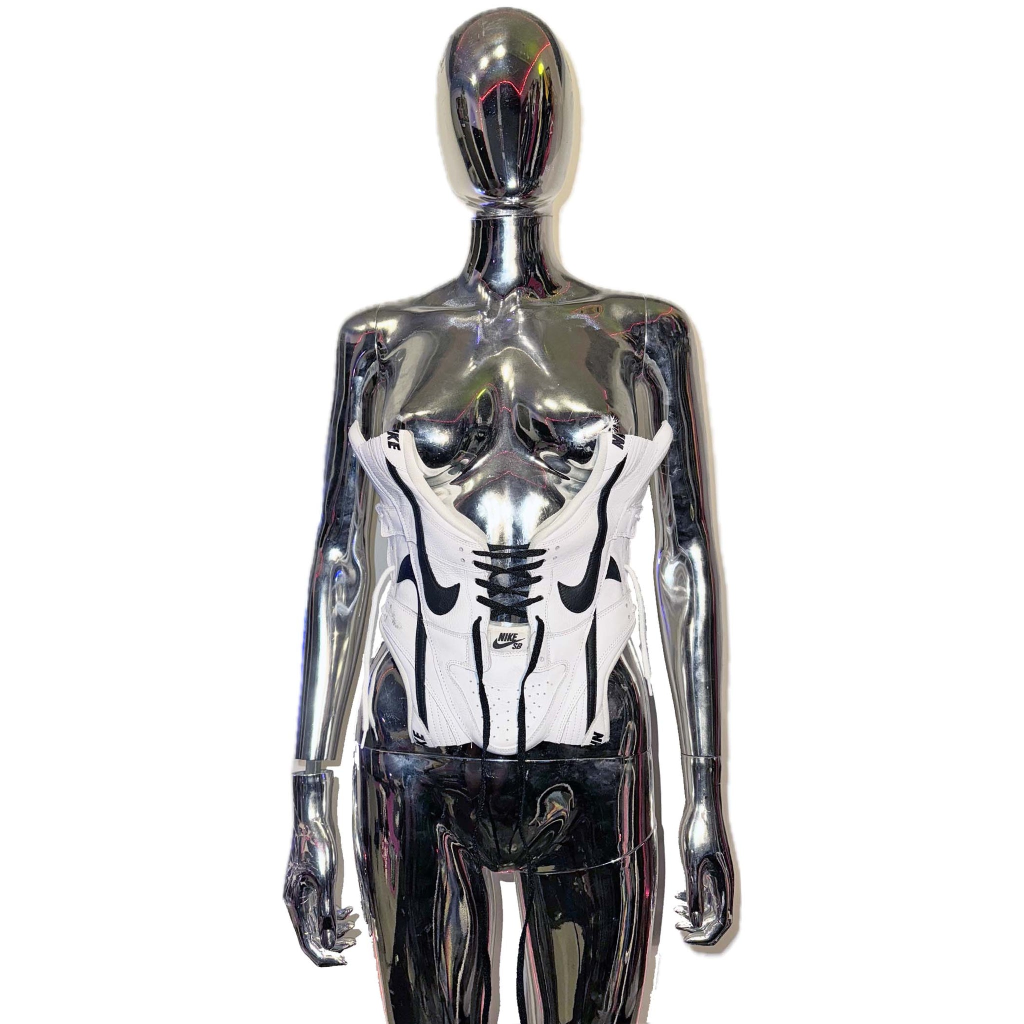 Introducing the FMG X REVERSE PANDA SNEAKER CORSET, a must-have for any fashionista on-the-go. Its 100% adjustable waist sizes range from 22 to 38 inches, making it the perfect versatile accessory for any wardrobe.