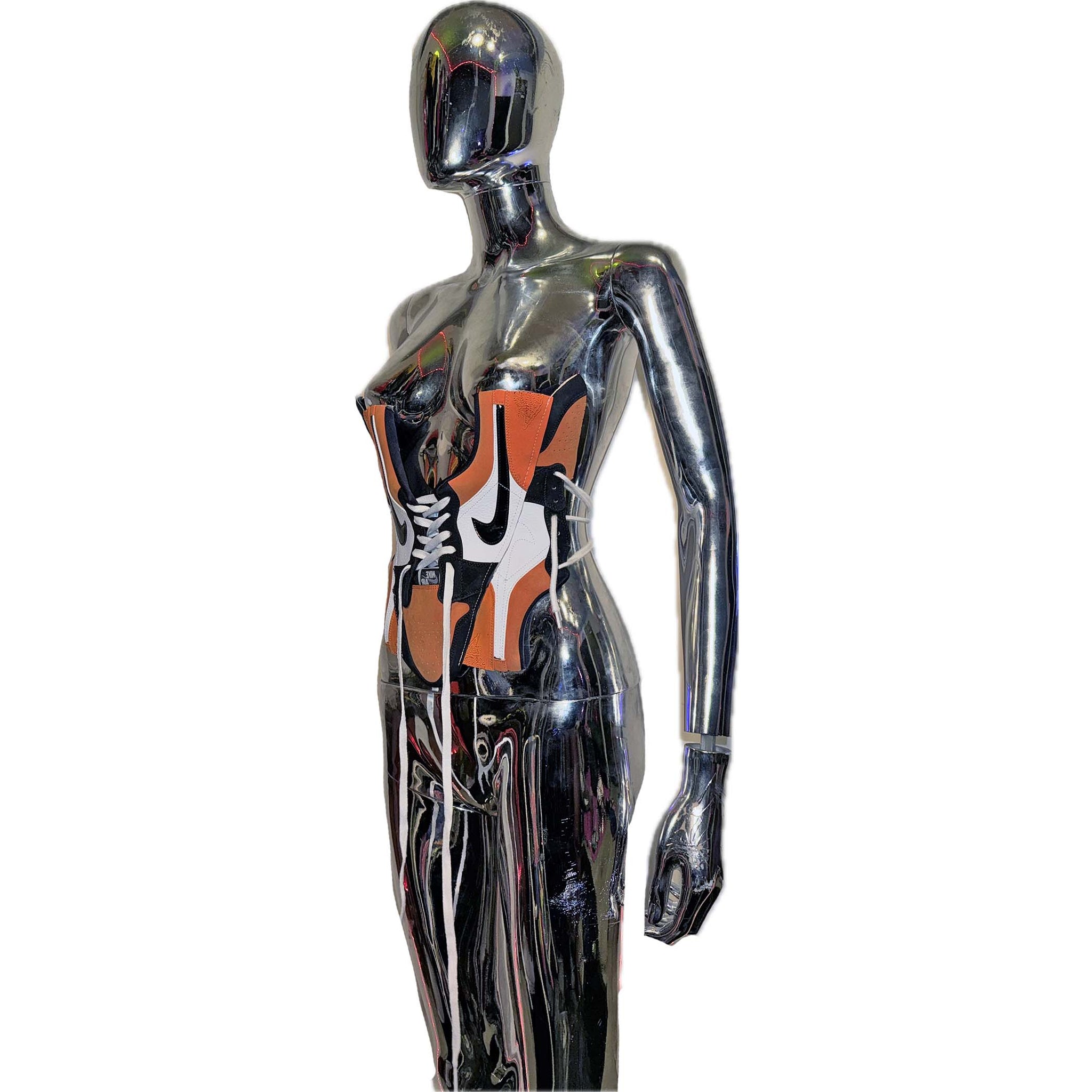 Introducing the FMG X SHATTERED BACKBOARD SNEAKER CORSET, a must-have for any fashionista on-the-go. Its 100% adjustable waist sizes range from 22 to 38 inches, making it the perfect versatile accessory for any wardrobe.