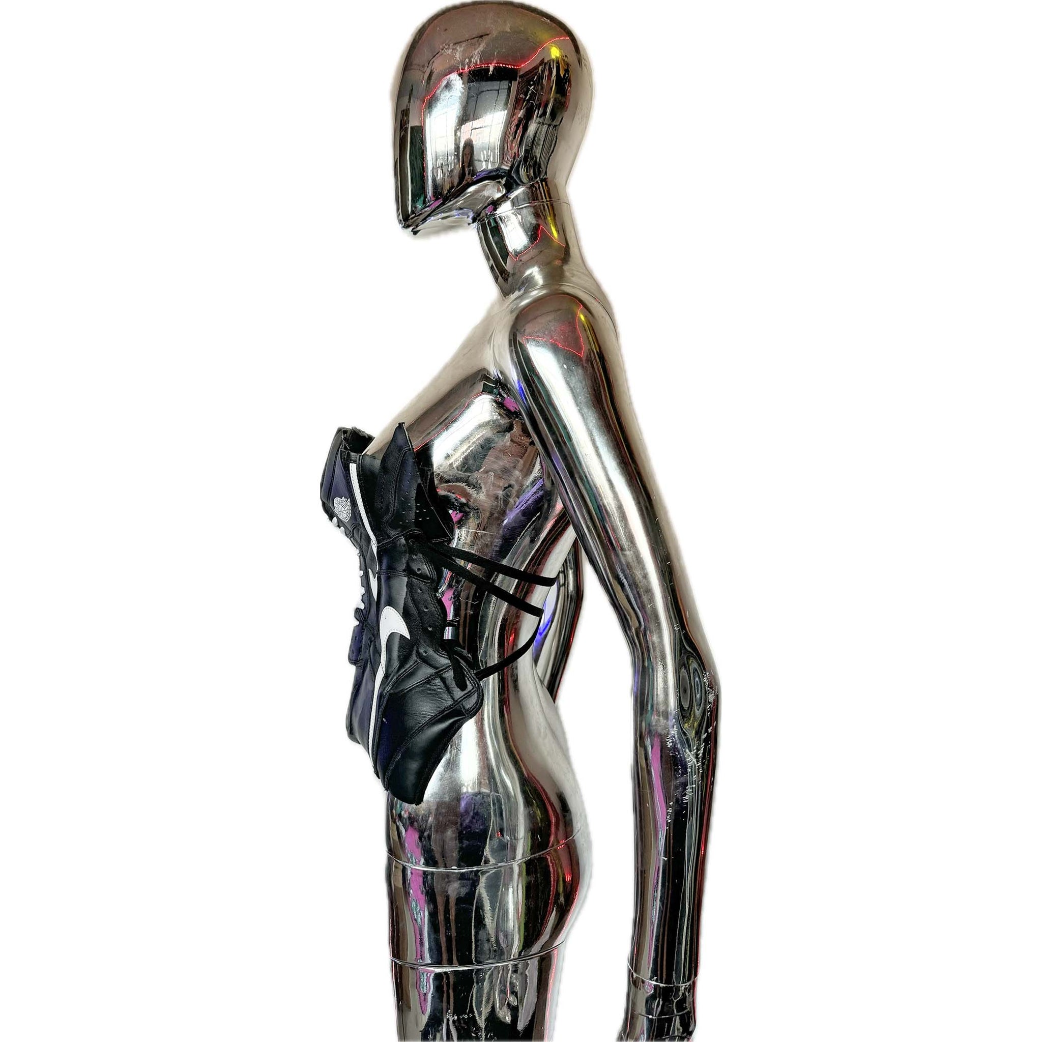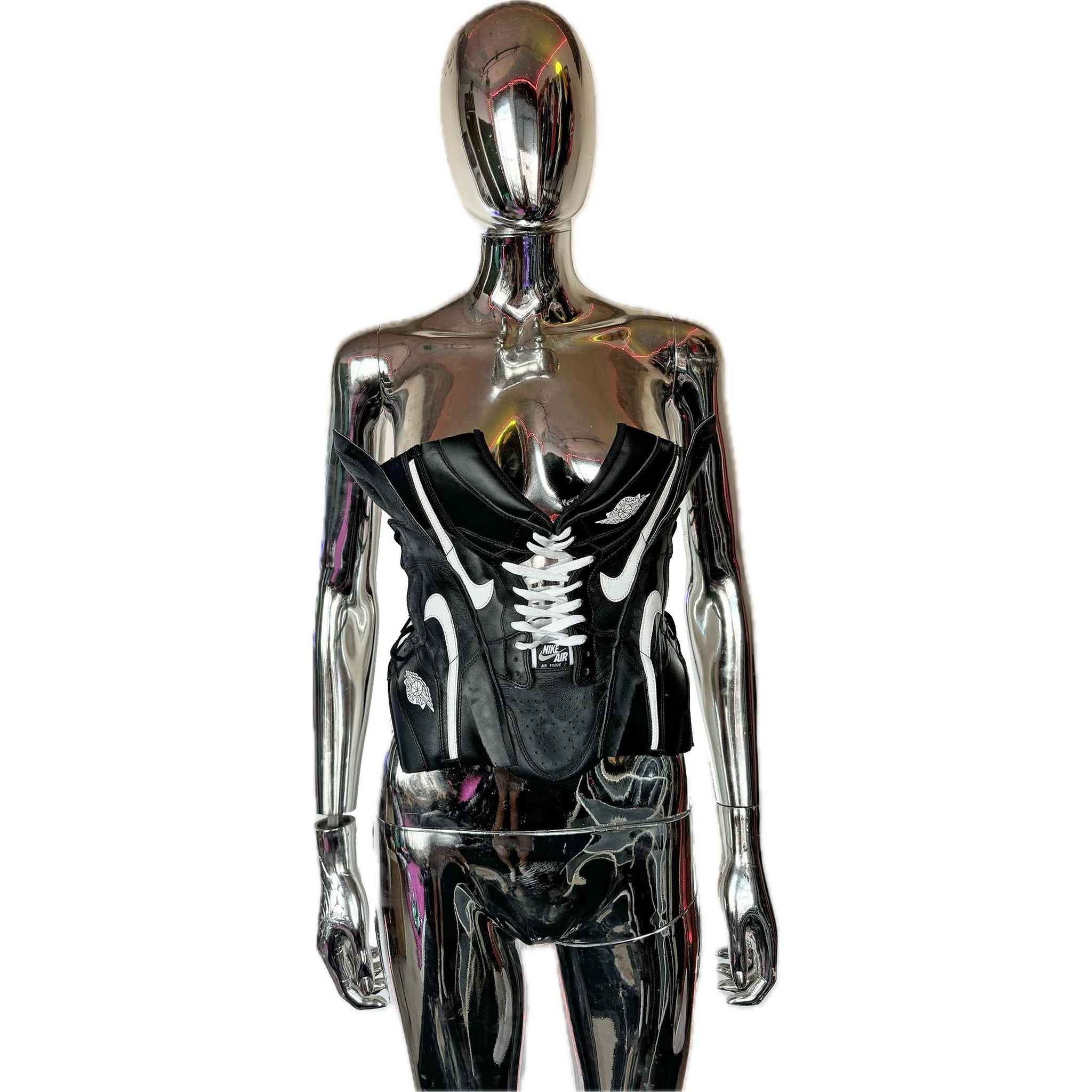 FMG X YIN + YANG SNEAKER CORSET is a handmade and upcycled sneaker corset that offers a perfect fit for top sizes 2-8. Crafted from the highest quality materials, its durable design is sure to not only last but look stylish.