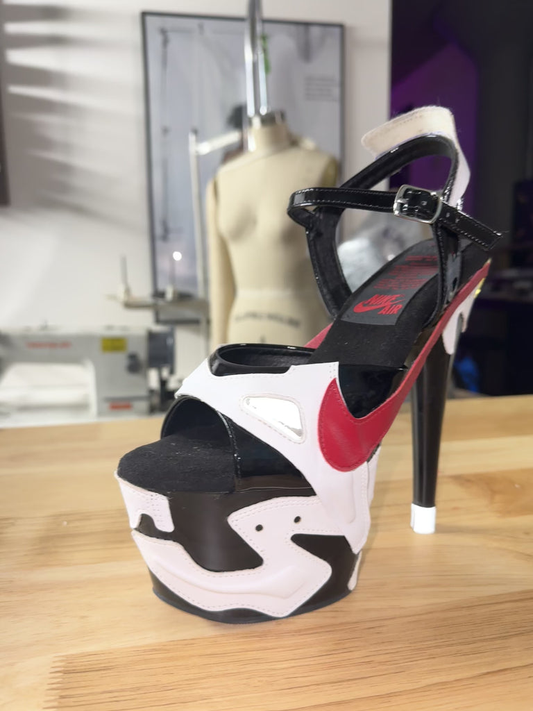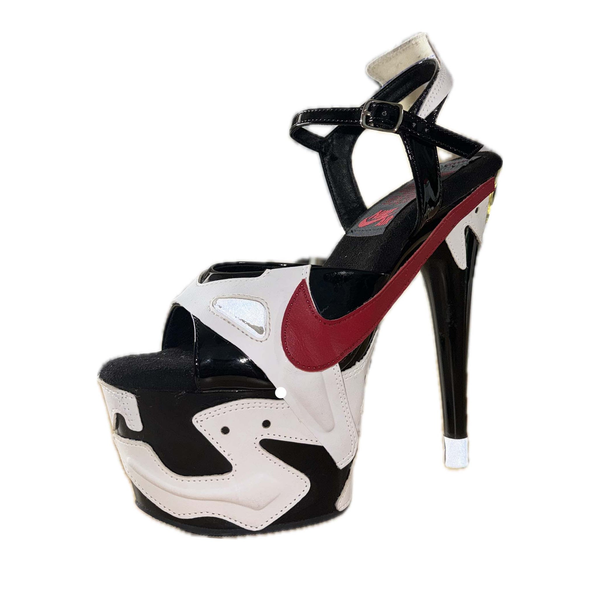 Introducing the FMG X MAX STILLETTO, a unique and one-of-a-kind handmade shoe crafted from recycled Nike Airmax material. With a playful and quirky design, this shoe is sure to turn heads. Please allow 2-3 weeks for fulfillment as each pair is made to order.