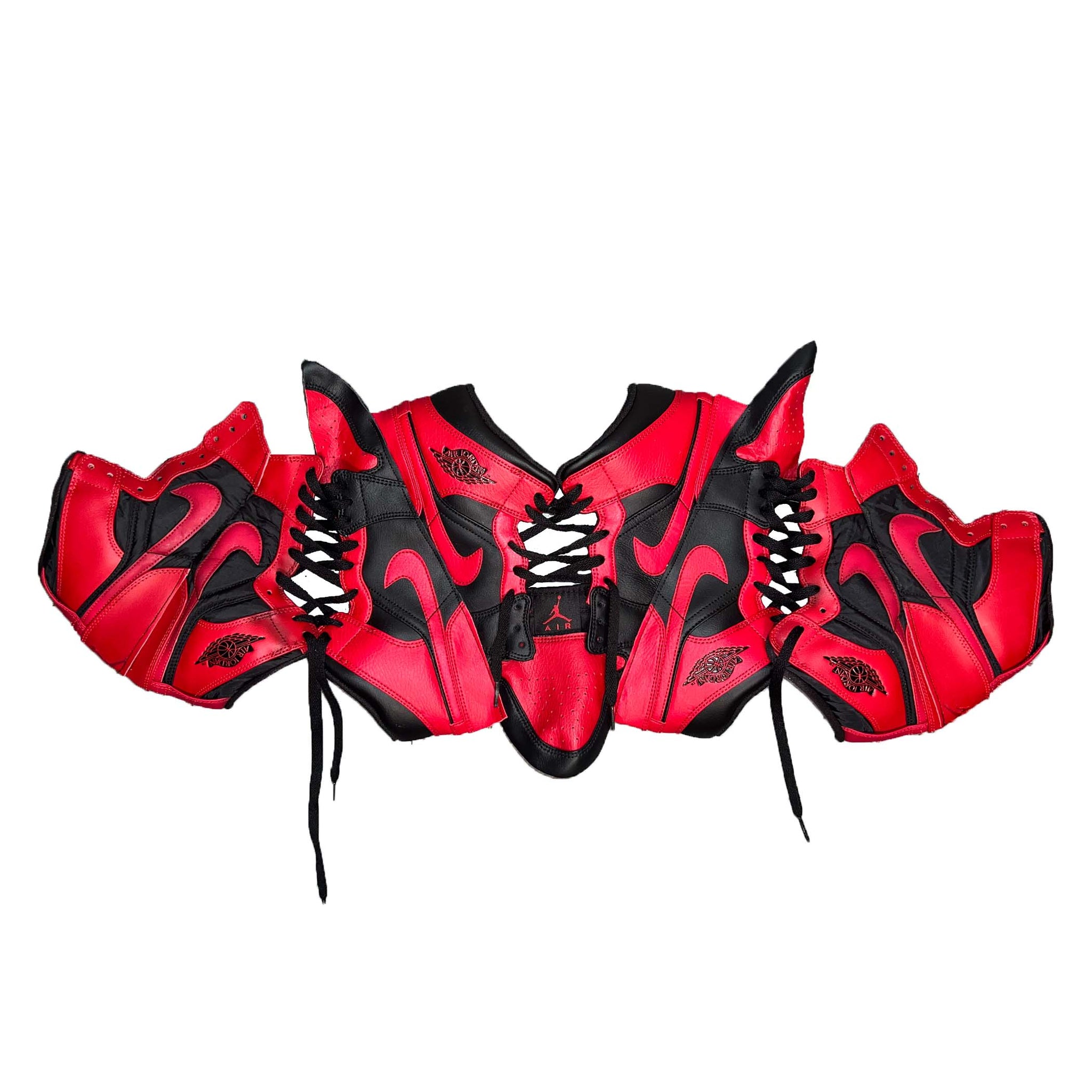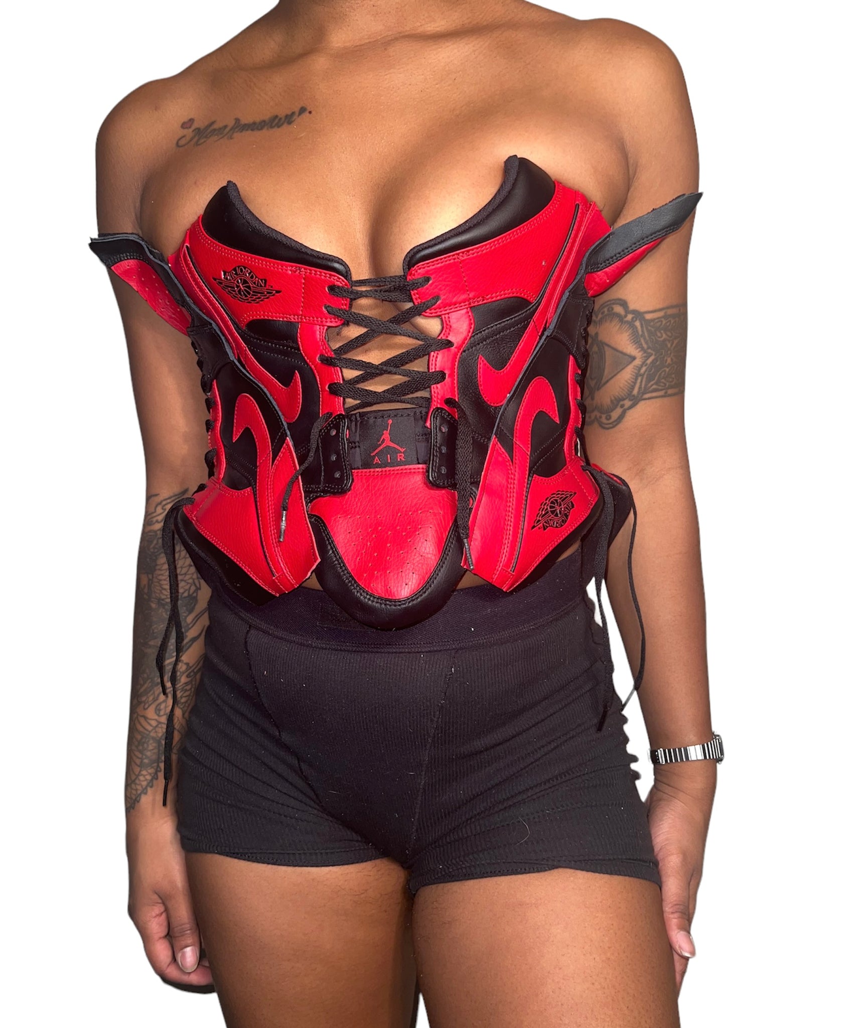 AJ-1 x FMG SIREN RED SNEAKER CORSET, handmade and upcycled fits top sizes 6-10