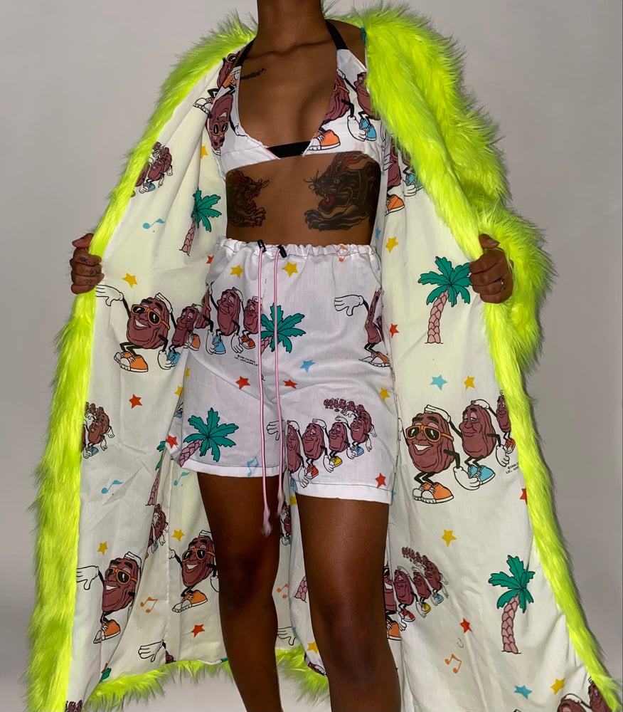 California Raisins Fur Set! Includes fur coat (one size) and bra top (A-B) , shorts. Handmade using recycled materials ✨