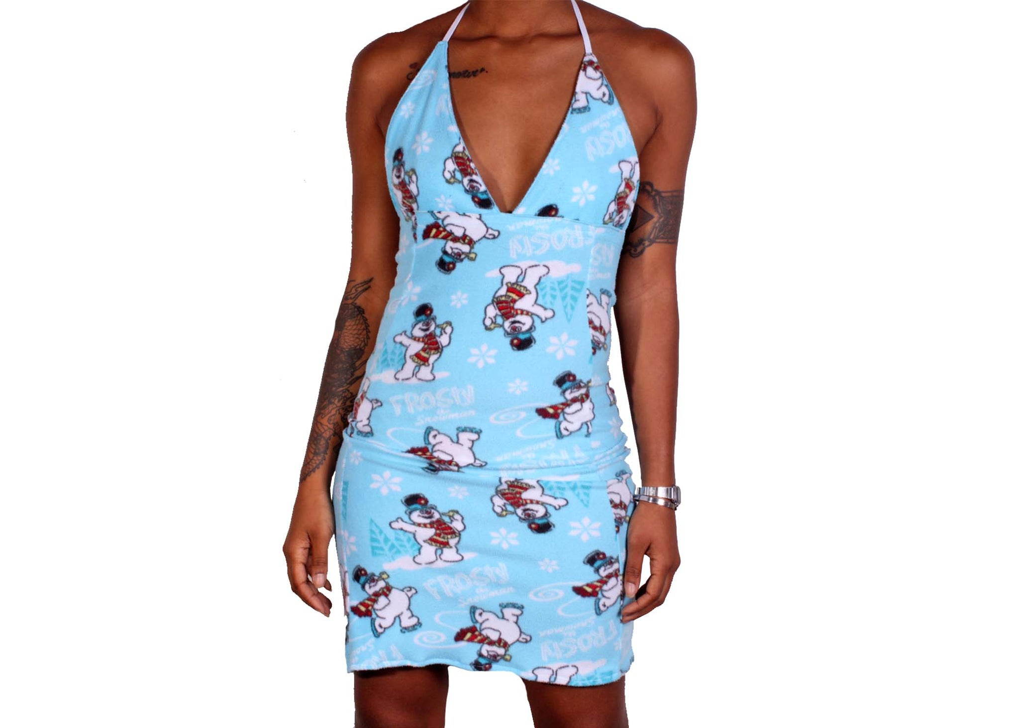 FROSTY DRESS, handmade and upcycled using pajama pants! Can fit small or medium ✨
