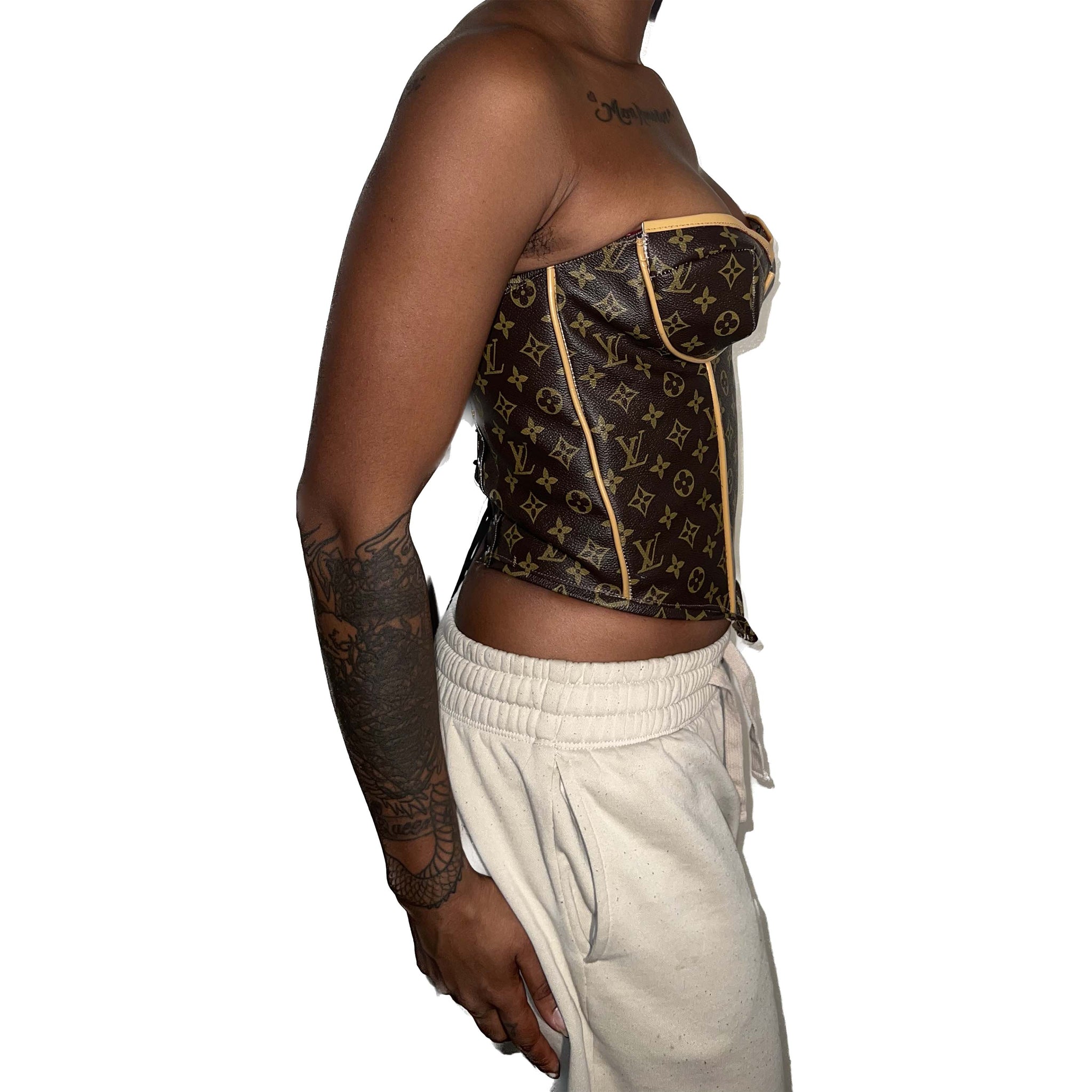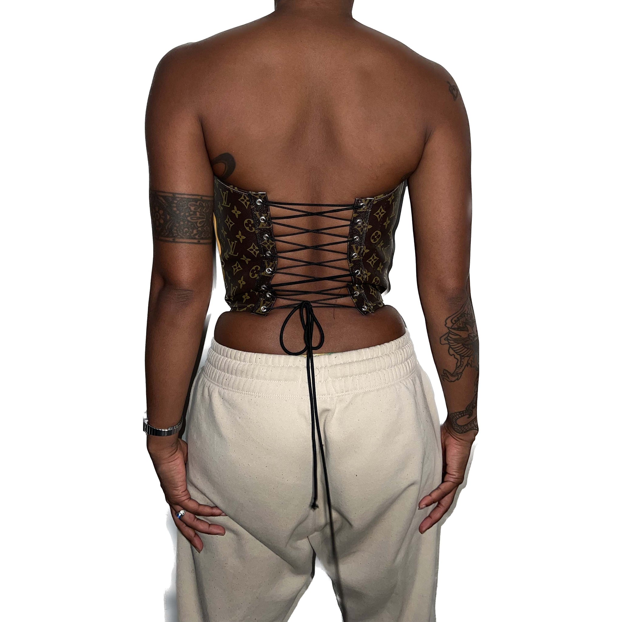 LV CORSET TOP handmade and cycled using a Louis Vuitton garment bag 🔥 FITS SIZES A, B, + C in this style!!